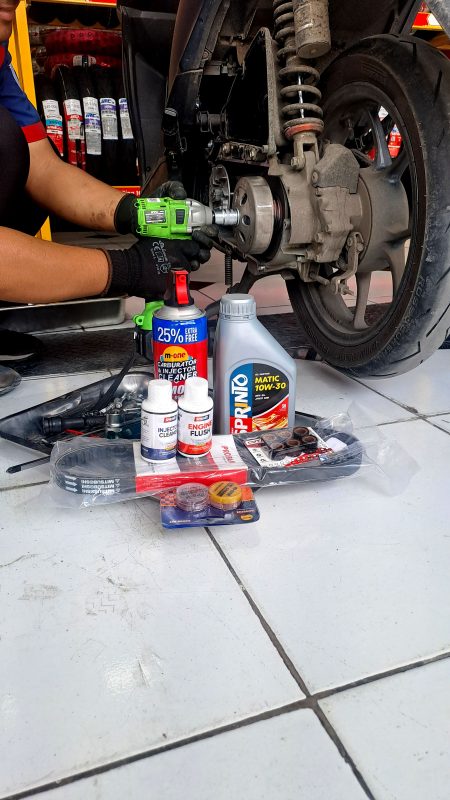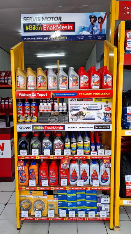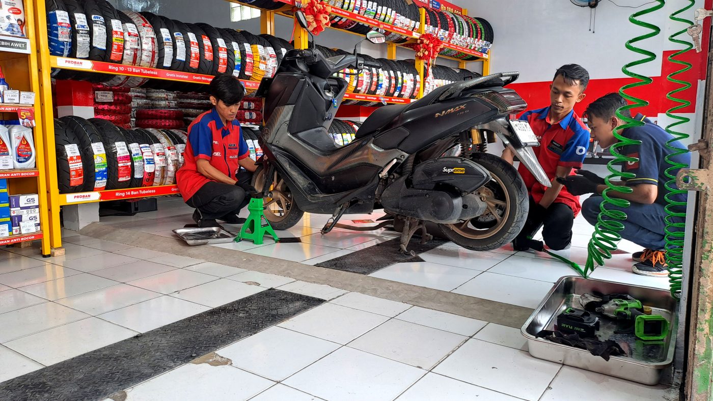 Selain ban motor, juga tersedia layanan servis motor, produk-produk berkualitas oli mesin dan gear, anti bocor, kampas rem, ban dalam, aki, dan pentil tubeless yang dijamin original.