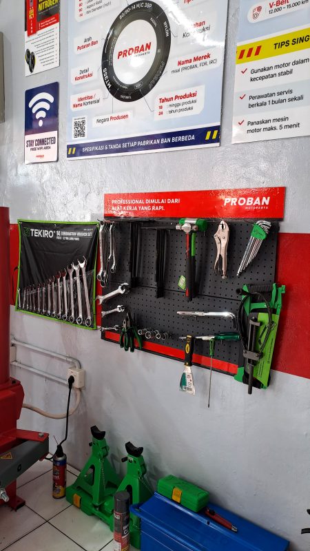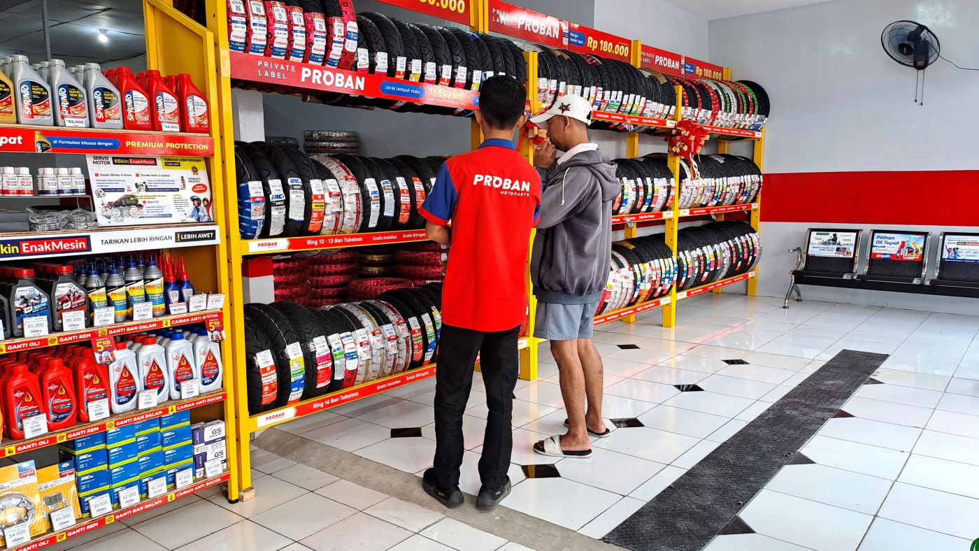 Yuk Probikerss, intip dan mampir ke Proban Buni Asih Bekasi, toko ban motor terlengkap yang sudah resmi dibuka 15 Desember kemarin! Pastinya ada banyak pilihan merek dan varian Ban motor, Oli berkualitas, Anti Bocor, Kampas Rem dan lain sebagainya. Tenang aja kalo bingung ukuran ban motormu yang mana, mekanik kami dengan ramah akan siap membantu😉