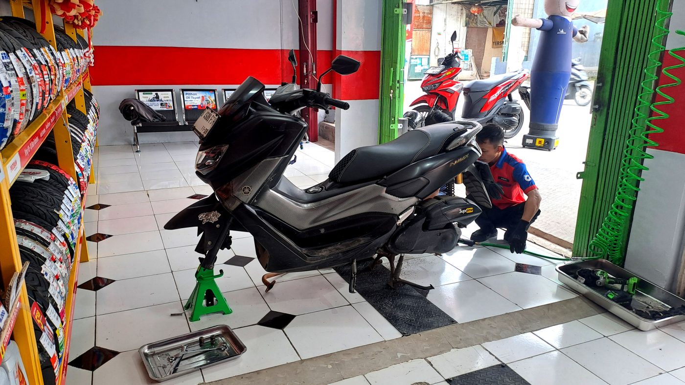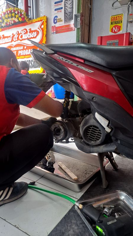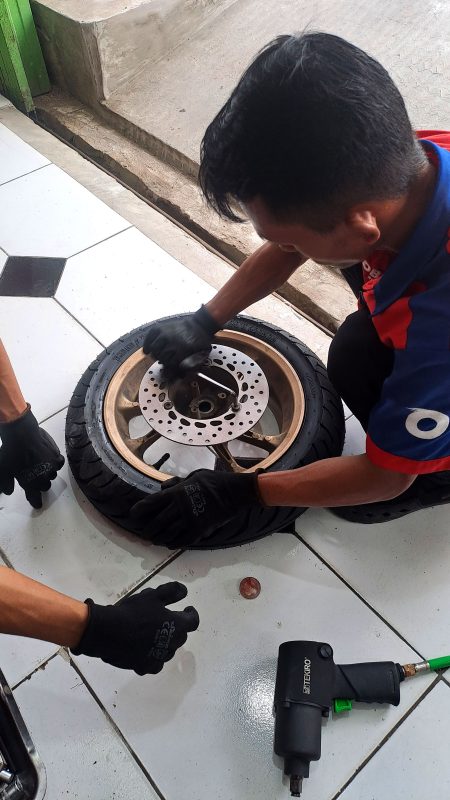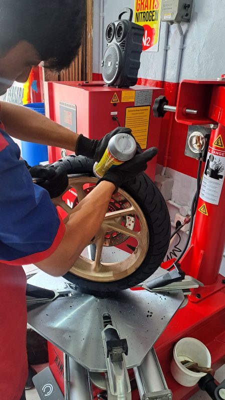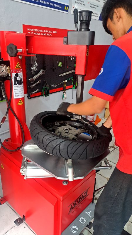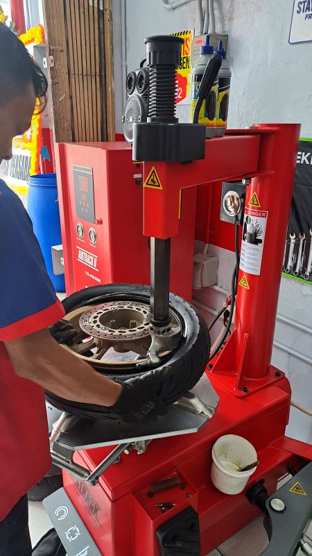 Untuk menjaga motor dan khususnya velg mu tetap kinclong, kita sudah menggunakan tire changer serta peralatan modern lainnya agar pergantian ban lebih aman, dijamin deh kamu puas dengan layanan dari mekanik handal kami di toko.
