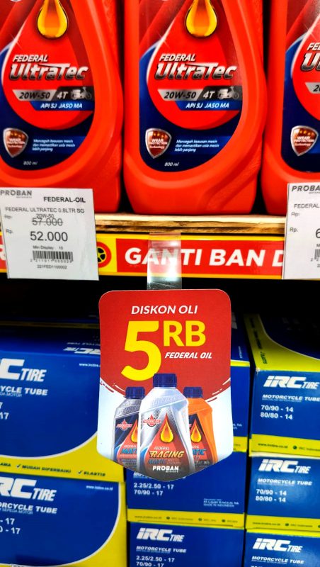 Selain itu ada juga Potongan harga 5 ribu untuk pembelian oli mesin semua varian Federal Oil, kamu udah bisa merawat motormu dengan produk berkualitas di Proban.