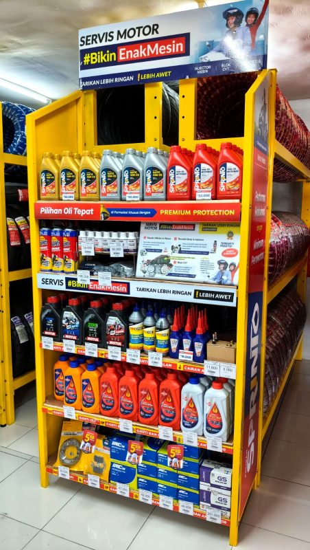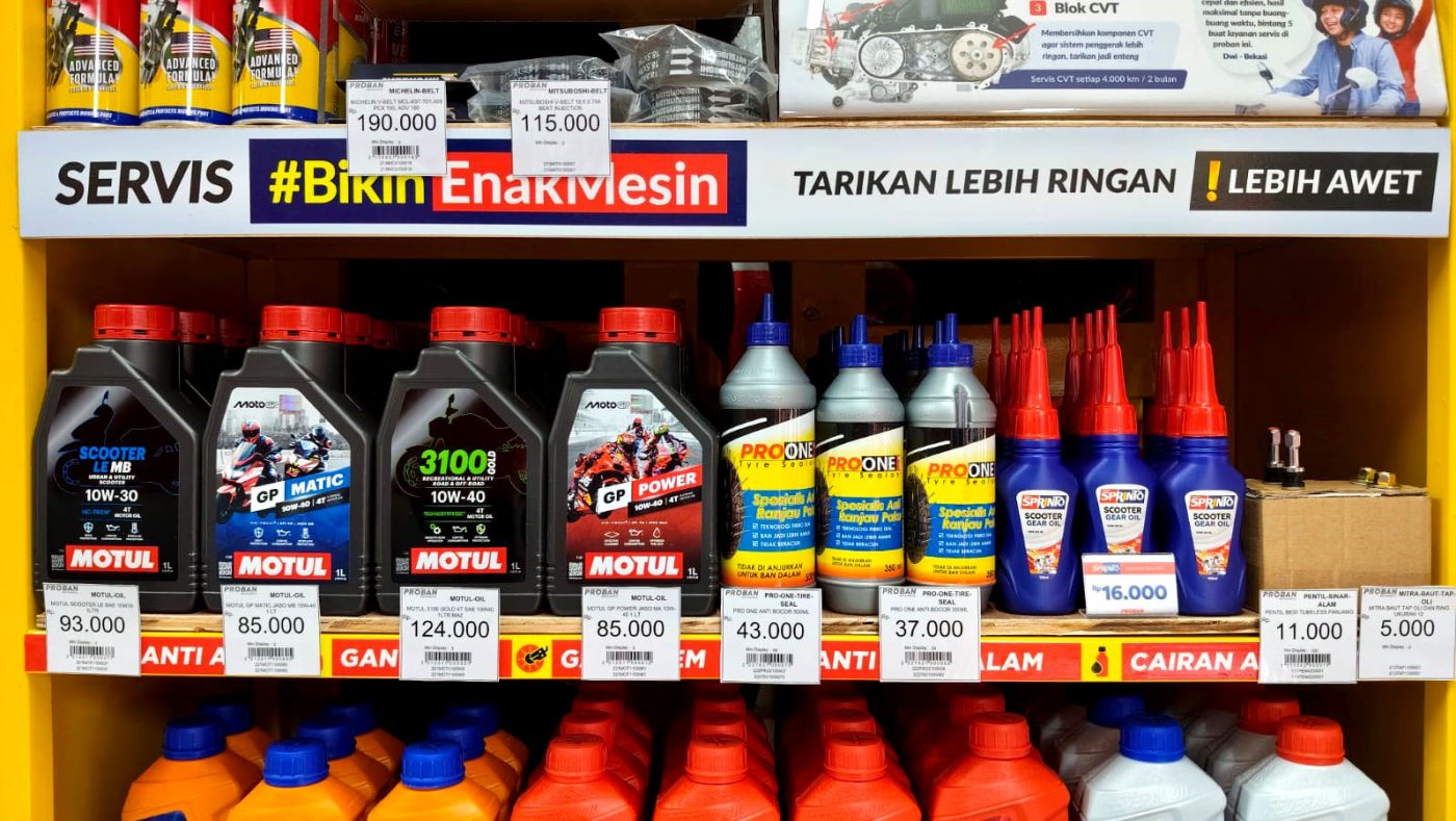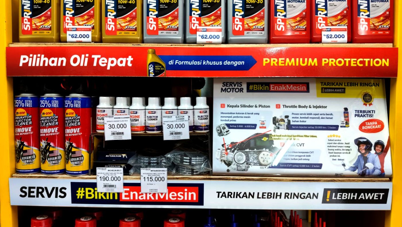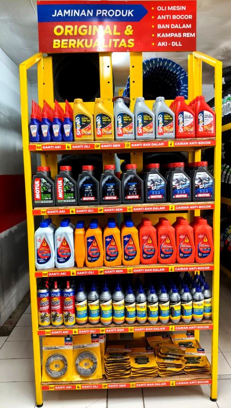 Selain ban motor, juga tersedia layanan servis motor, produk-produk berkualitas oli mesin dan gear, anti bocor, kampas rem, ban dalam, aki, dan pentil tubeless yang dijamin original.