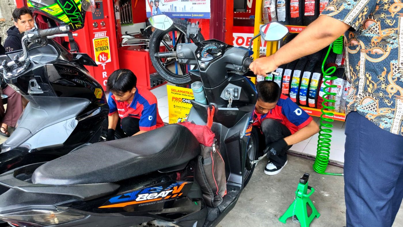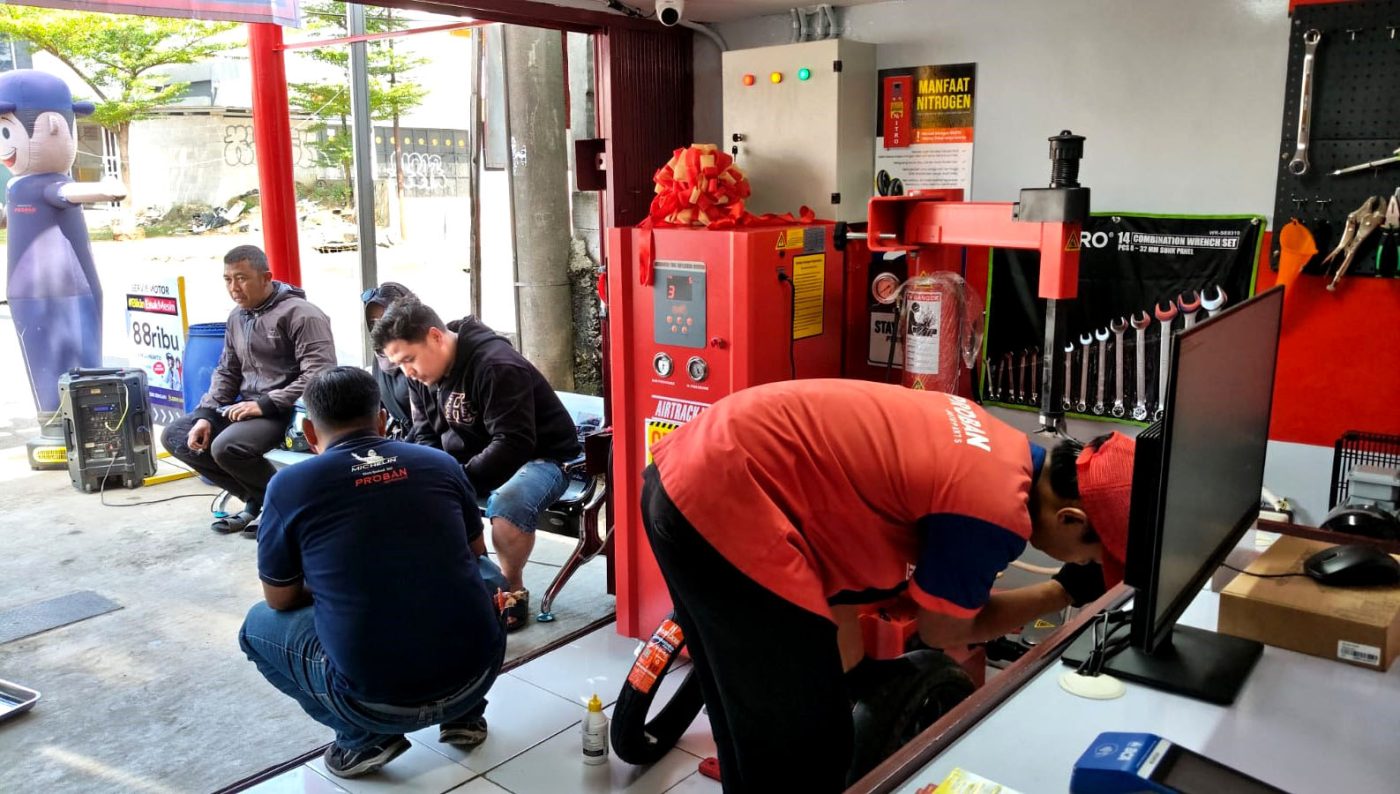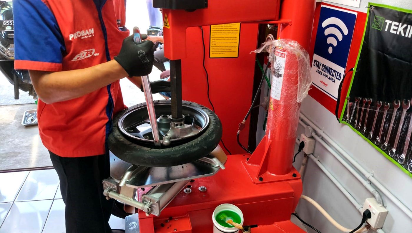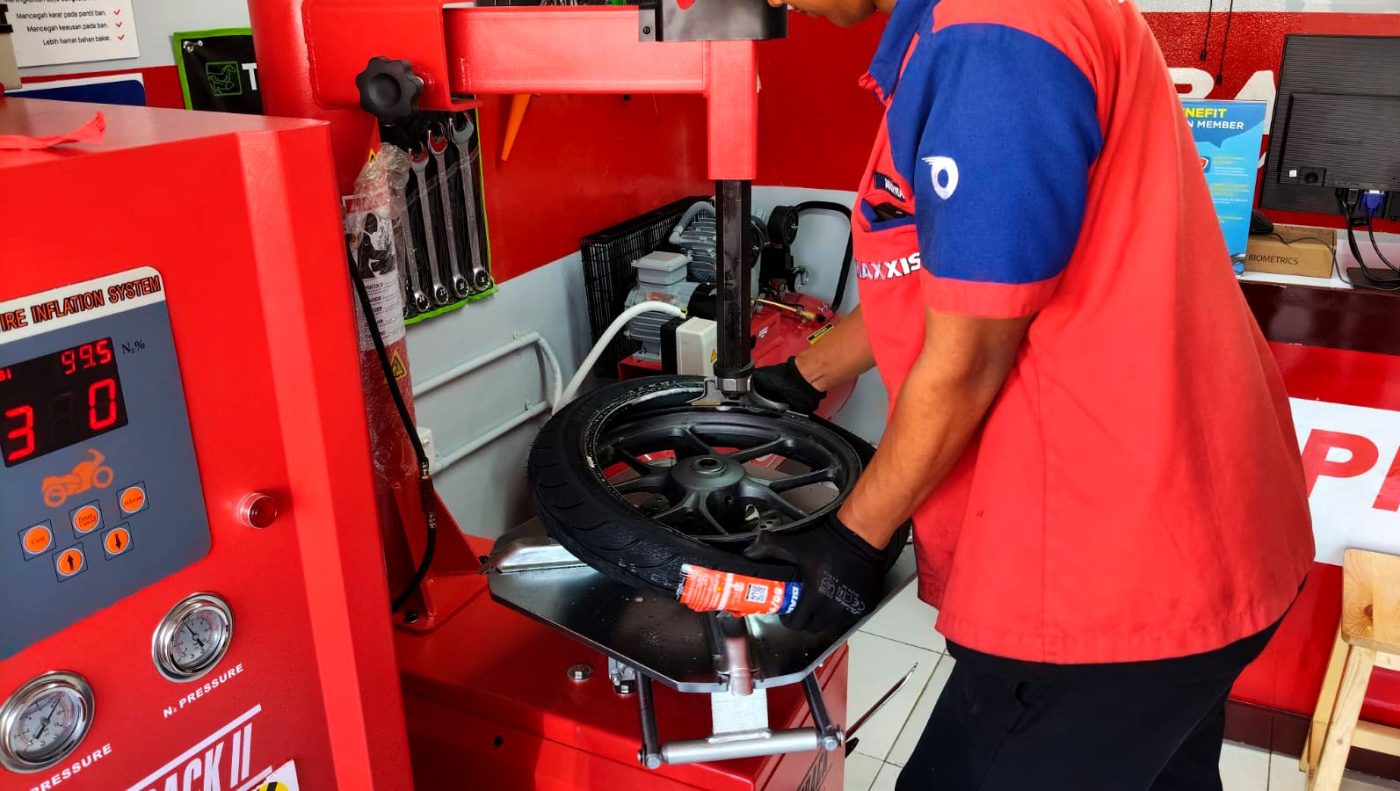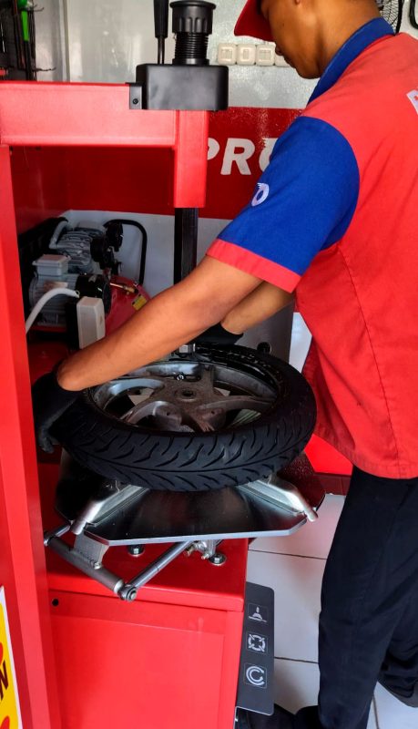 Untuk menjaga motor dan khususnya velg mu tetap kinclong, kita sudah menggunakan tire changer serta peralatan modern lainnya agar pergantian ban lebih aman, dijamin deh kamu puas dengan layanan dari mekanik handal kami di toko.
