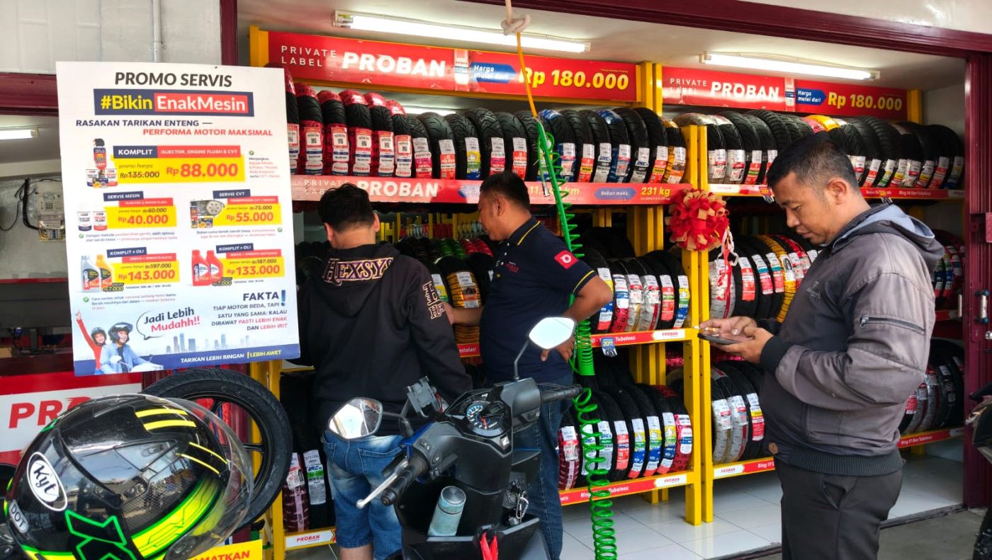 Yuk Probikerss, intip dan mampir ke Proban Parung Mekar Bogor, toko ban motor terlengkap yang sudah resmi dibuka 21 November kemarin! Pastinya ada banyak pilihan merek dan varian Ban motor, Oli berkualitas, Anti Bocor, Kampas Rem dan lain sebagainya. Tenang aja kalo bingung ukuran ban motormu yang mana, mekanik kami dengan ramah akan siap membantu😉